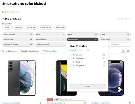 But not all refurbishments are the same. «Suppliers classify devices into different quality grades. Some suppliers have four grades ranging from almost new to heavy signs of use, while others only have two.» Galaxus and Digitec use a four-tier grading system spanning from «Like new» to «Acceptable». «This filter is very useful for customers,» explains Sebastian Haut, Junior Category Business Manager at Galaxus.