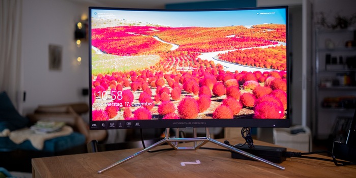 J'en oublie presque le plus important : le moniteur. L'œil est tout de suite attiré par le support en métal qui rappelle les cages de sécurité des voitures de course. La courbure de 1000R, en revanche, fait écho aux formes rondes de Porsche, et le design presque sans bords sur trois côtés donne une esthétique épurée. Le design est tout à fait réussi selon moi. Il me rappelle vraiment les sportives de Porsche.