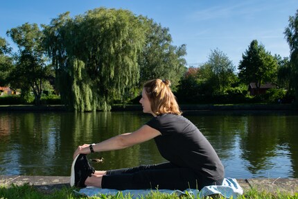 Aujourd’hui, je veux changer ma séance du jour et la faire à l’extérieur. C’est beaucoup plus facile sans ordinateur, c’est pourquoi je décide d’étirer les parties les plus importantes de mon corps sans consignes. Vous trouverez par exemple un aperçu et des instructions précises ici.